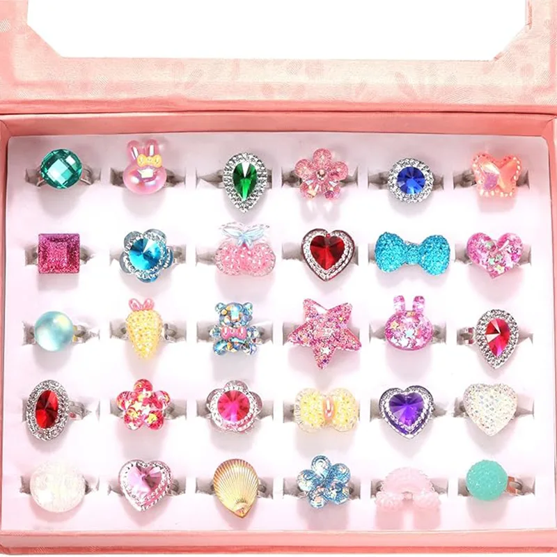 Rekaan Unik - Set ini termasuk 30 gaya cincin batu permata tiruan yang berbeza, yang pasti akan memikat hati anak anda. Cincin ini diperbuat daripada bahan akrilik lutsinar dan mempesonakan. Reka bentuk unik seperti yang ditunjukkan.