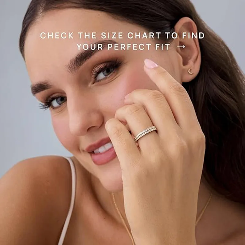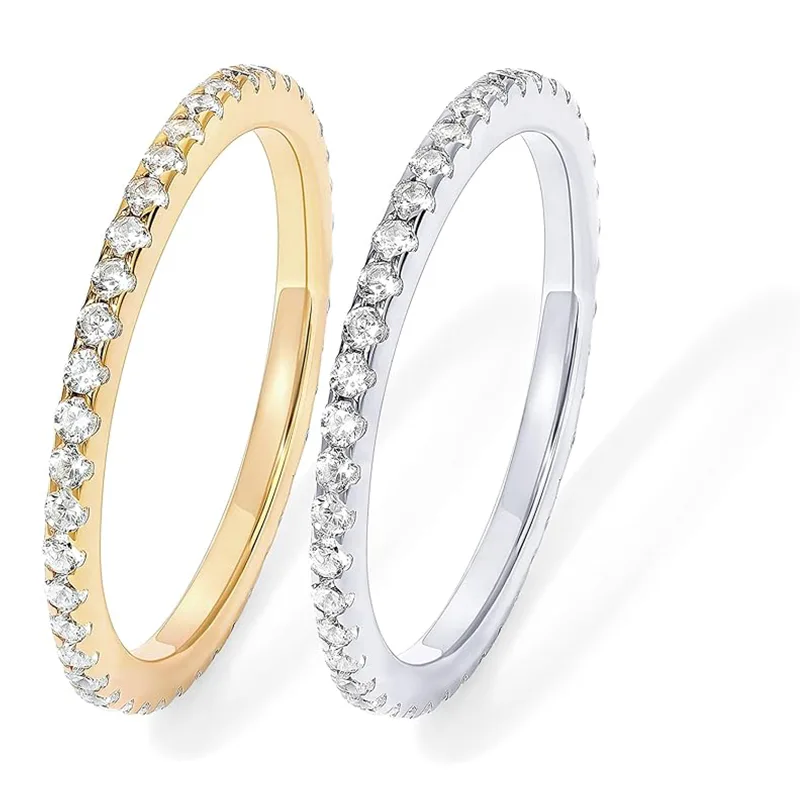 Sorotan: Cincin pertunangan wanita nipis 1.8mm ini boleh dipadankan dengan cincin pertunangan, aksesori khas atau cincin kecergasan untuk membentuk gabungan yang lancar dan bergaya. Anda boleh melapisi cincin fesyen wanita berlian dengan perhiasan emas kegemaran anda untuk mencipta kesan yang berani dan menarik perhatian, atau memakainya sahaja untuk mempamerkan keanggunan yang halus.