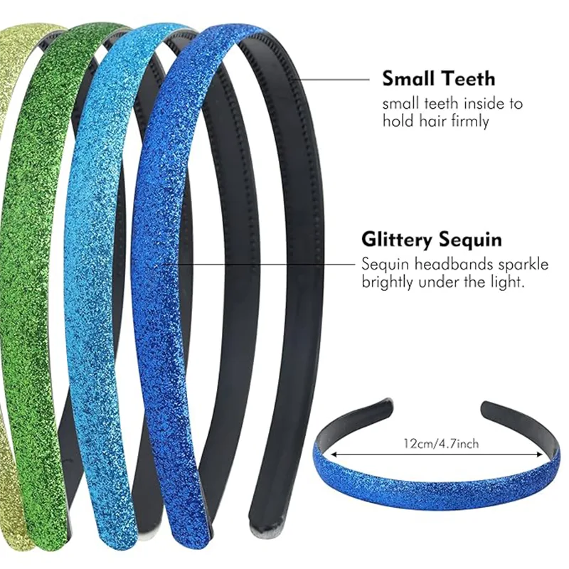 Saiz boleh laras: Diameter asal ikat kepala plastik pakaian perayaan Glitter ini adalah kira-kira 12 cm / 4.7 inci, tetapi ia boleh diregangkan agar muat pada kepala orang yang berbeza, memastikan semua orang boleh memakainya.