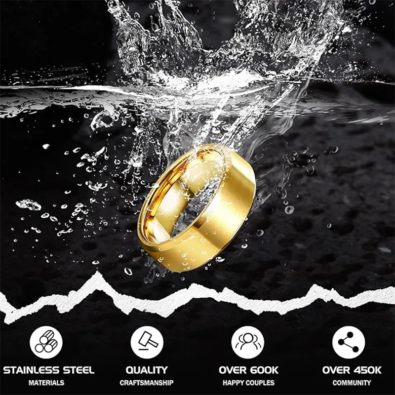 Cincin lelaki keluli tahan karat boleh digunakan sebagai cincin komitmen untuk menyampaikan perasaan anda. Reka bentuknya yang ringkas membawa emosi yang mendalam dan sesuai untuk majlis romantis seperti Hari Valentine dan ulang tahun.